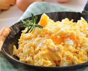 - Ne pas arrêter de remuer à la spatule pour que les œufs de deviennent pas une omelette