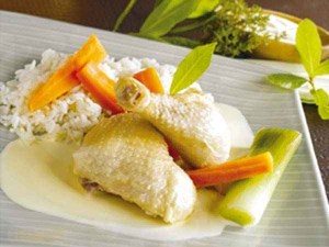 - Servir la cuisse de poule, napée de sauce et accompagnée de quelques légumes recueillis à l’écumoire dans le bouillon.